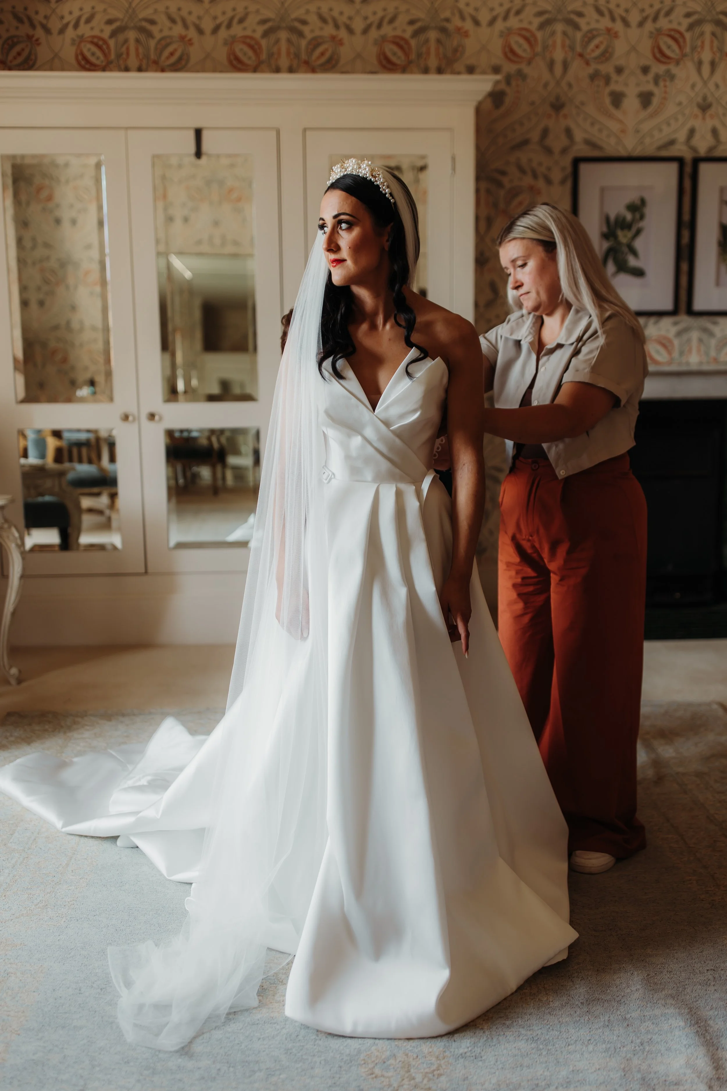 Charlottes wedding morning was lovely and relaxed, Charlotte wanted her makeup to be very glam and she wanted to stand out on her wedding day so we decided on a glam Hollywood makeup look to compliment her glamorous holly wood waves, I love her headband by Victoria Percival accessories